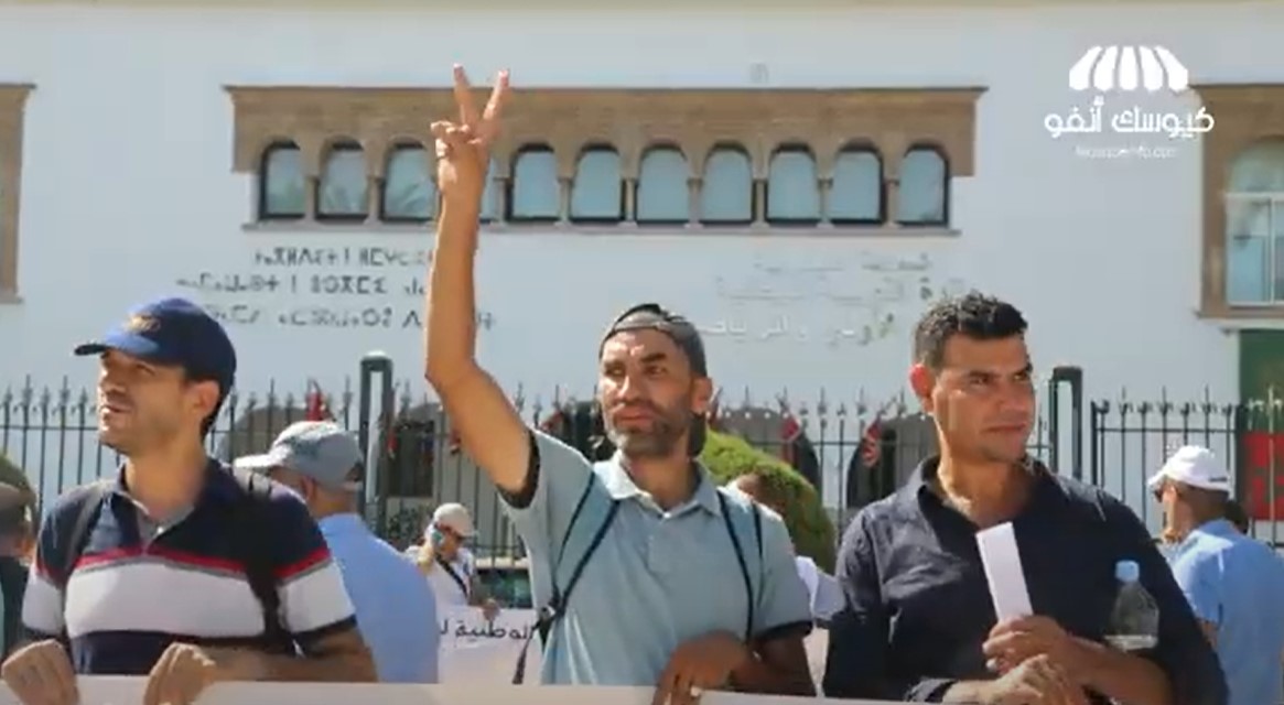 المتصرفون التربويون يحتجون من أمام وزارة التربية الوطنية تنديدا بأوضاعهم(فيديو)