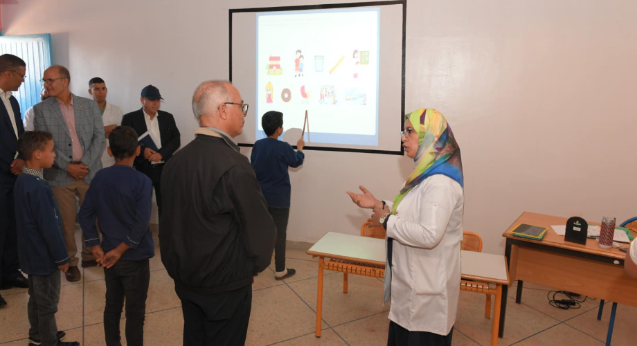 وتضمنت المحطة الخامسة، زيارة مركزية مجموعة مدارس أكويم بجماعة إغرم نوكدال، والتي تدخل ضمن المؤسسات المنخرطة في مشروع “مؤسسات الريادة”، أحد المشاريع التي جاء بها برنامج الإصلاح التربوي خارطة الطريق 2022-2026، الهادف لتجويد التعلمات وفق طرائق وأساليب جديدة في التدريس، حيث عاين الوزير البنية التحتية للمؤسسة والتجهيزات الرقمية والدراسية التي تم توفيرها لتنزيل هذه التجربة الرائدة.