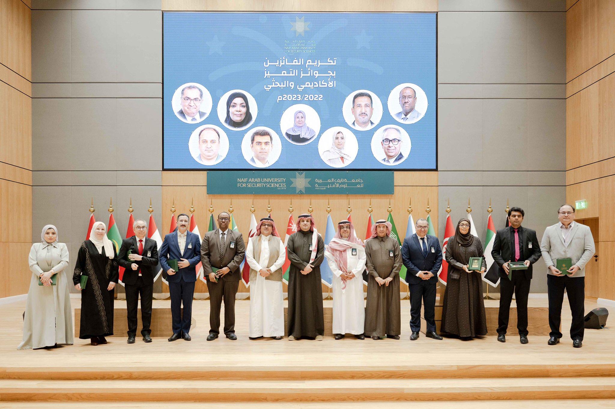 أقامت جامعة نايف العربية للعلوم الأمنية، الذراع العلمي لمجلس وزراء الداخلية العرب، مؤخرا، بالرياض احتفالًا بمناسبة منح جوائز التميز الأكاديمي والبحثي السنوية في مجالات البحث العلمي، والتدريس، والتعلم الإلكتروني.