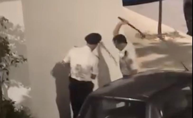 ويظهر في شريط الفيديو عنصران من الشرطة بزيهما الرسمي وهما يعتديان بالضرب على مواطن في الشارع العام، وسط صرخاته طلباً للكف عن ضربه.