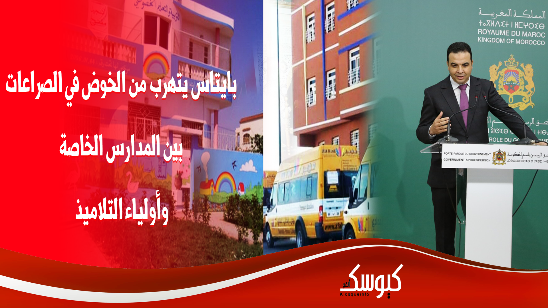 تجاهل مصطفى بايتاس، الناطق الرسمي باسم الحكومة، الحديث عن موقف الحكومة بخصوص الصراع القائم بين مؤسسات التعليم الخاص وأولياء التلاميذ بالقطاع، بسبب مطالبة هذه المؤسسات الآباء بأداء الواجب الشهري عن شهر يوليوز المقبل كونها ستواصل الدراسة خلال الأسبوع الأول من الشهر المذكور.