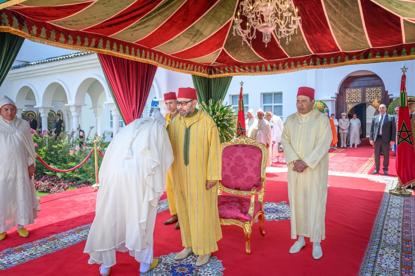 Le Souverain a également été salué par le doyen du corps diplomatique africain, ambassadeur de la République du Cameroun, M. Mohamadou Youssifou, le doyen du corps diplomatique arabe, Ambassadeur du Royaume de Bahreïn, M. Khalid Bin Salman Jabr Al-Musallam, le doyen du corps diplomatique européen par intérim, ambassadeur de l’Ordre souverain militaire de Malte, M. Julien-Vincent Brunie, le doyen du corps diplomatique américain, Ambassadeur de la République argentine, M. Raul Ignacio Guastavino, et le doyen du corps diplomatique asiatique par intérim, Ambassadeur d’Australie, M. Michael Cutts.
